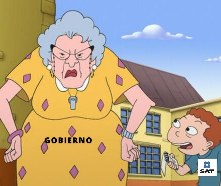 En palabras sencillas el SAT es como Randall que anda de chismoso con la maestra Finster (gobierno) contándole sobre los ingresos de los contribuyentes, además de que a él le encargan que pase con cada uno para que todos aporten en la coperacha para el convivio (gasto público).